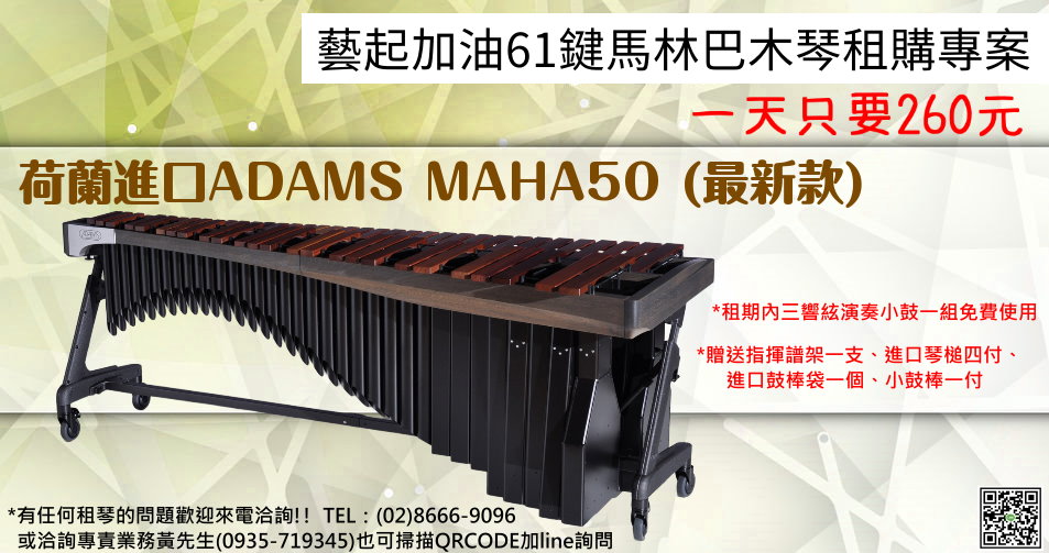 藝起加油61鍵馬林巴木琴租購專案~荷蘭進口ADAMS MAHA50